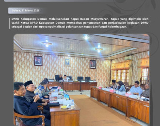 Selengkapnya Demak – Dewan Perwakilan Rakyat Daerah (DPRD) Kabupaten Demak menggelar Rapat Badan Musyawarah (Bamus) pada Selasa, 31 Maret 2026, bertempat di Ruang Rapat Pimpinan DPRD Kabupaten Demak....