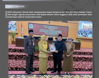 Demak – Dewan Perwakilan Rakyat Daerah (DPRD) Kabupaten Demak menggelar Rapat Paripurna Ke-7 dan Ke-8 Masa Sidang I (Kesatu) Tahun 2026 pada Selasa, 31 Maret 2026, bertempat di Ruang Rap...