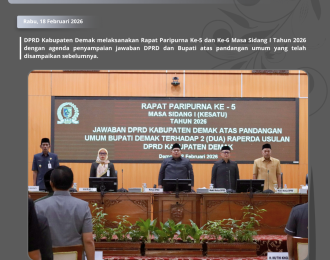 SelengkapnyaDemak — DPRD Kabupaten Demak kembali menunjukkan komitmennya dalam mendukung pembangunan daerah melalui terselenggaranya Rapat Paripurna Ke-47 Masa Sidang III Tahun 2025, yang digelar pada Kamis...